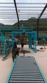 యంత్రం ఒక కన్వేయర్ బెల్ట్ను కలిగి ఉంటుంది, ఇది బ్లాక్లను క్యూబింగ్ స్టేషన్ వైపుకు కదిలిస్తుంది. క్యూబింగ్ స్టేషన్లో, బ్లాక్లు స్వయంచాలకంగా కావలసిన నమూనాలలో (4x2, 3x3, 2x2x2 వంటివి) అమర్చబడి, ఆపై ఒక రోబోటిక్ చేయి లేదా క్రేన్ ద్వారా ఒక ప్యాలెట్లో లేదా నిల్వ చేసే ప్రదేశంలో లేపబడి పేర్చబడి ఉంటాయి.